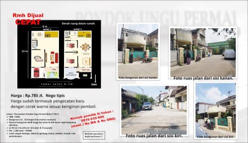 Harga Jual Rp.785.000.000 Jika berminat silahkan hubungi Pemilik Rumah Telp/WA: 08121075238