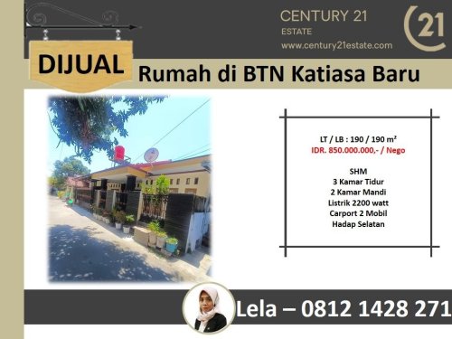 Rumah Dijual di BTN Katiasa Baru No.21 Kalijaga Harjamukti Kota Cirebon Dekat Terminal Harjamukti Cirebon, Dekat RS Ciremai Cirebon, Dekat RSD Gunung Jati Cirebon, Dekat Grage City Mall Cirebon, Dekat Mall CSB Cirebon, Dekat Keraton Kasepuhan Cirebon, Dekat Stasiun Cirebon Prujakan.