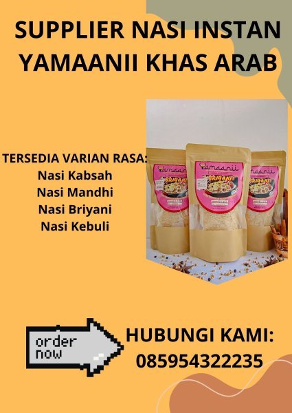 Ingin menikmati nasi dengan cita rasa khas Timur Tengah yang sudah disesuaikan dengan selera Indonesia? Nasi Instan Yamaanii hadir dengan 4 varian rasa istimewa: Kebuli, Mandhi, Kabsah, dan Briyani. Setiap varian terbuat dari beras Basmati pilihan dan bumbu kering berkualitas, yang sudah diakulturasi dengan cita rasa Nusantara, sehingga menghasilkan hidangan yang lezat, praktis, dan menggugah selera.