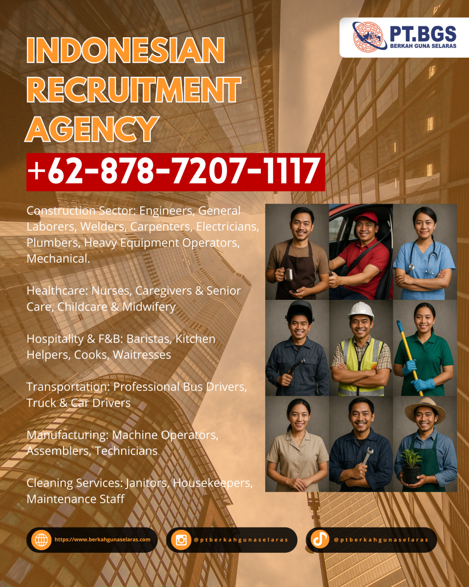 "+62-878-7207-1117 Trusted, Labour Office In Indonesia For Al Muharraq, Bahrain Call Or Whatsapp Me http://wa.me/6287872071117 , Labour Office In Indonesia For Al Muharraq, Bahrain, International Skilled Worker Company In Indonesia For Al Muharraq, Bahrain, Staffing Company In Indonesia For Diraz , Bahrain, Staffing Companies In Indonesia For Amman, Jordania, Staffing Office In Indonesia For Zarqa, Jordania, Recruiting Agency In Indonesia For Irbid, Jordania, Recruiting Agencies In Indonesia For Russeifa, Jordania, Recruiting Supplier In Indonesia For Khuraybat as S?q, Jordania, Recruiting Company In Indonesia For Wadi Al Seer, Jordania Looking for Reliable, Skilled, and Professional Workers? Choose Indonesia’s Best! We focus on connecting international companies with skilled and experienced Indonesian professionals across a variety of sectors. -Construction Sector: Engineers, General Laborers, Welders, Carpenters, Electricians, Plumbers, Heavy Equipment Operators, Mechanical -Healthcare: Nurses, Caregivers & Senior Care, Childcare & Midwifery -Hospitality & F&B: Baristas, Kitchen Helpers, Cooks, Waitresses -Transportation: Professional Bus Drivers, Truck & Car Drivers -Manufacturing: Machine Operators, Assemblers, Technicians -Cleaning Services: Janitors, Housekeepers, Maintenance Staff Why Choose Indonesian Workers from PT BGS? -Over 19 Years of Global Deployment Experience -Fully Licensed by Indonesia’s Ministry of Manpower -End-to-End Service: Recruitment, Medical, Visa, Deploymen -Trusted by Clients like Samsung, Hyundai, Bahra Cable, Huta Hegerfeld, Vision Etimaad, Saudi Binladin Group and many others -Ready for Large-Scale Partner with us and get manpower solutions tailored to your needs. -Contact Us Today -Website: www.berkahgunaselaras.com -Email: pt.bgs.id@gmail.com -Phone: +62-878-7207-1117 +62-852-8094-4939 Indonesia – Ready to Serve the World #LabourOfficeInIndonesiaForAlMuharraq,Bahrain, #InternationalSkilledWorkerCompanyInIndonesiaForAlMuharraqBahrain, #StaffingCompanyInIndonesiaForDiraz Bahrain, #StaffingCompaniesInIndonesiaForAmmanJordania, #StaffingOfficeInIndonesiaForZarqaJordania, #RecruitingAgencyInIndonesiaForIrbidJordania, #RecruitingAgenciesInIndonesiaForRusseifaJordania, #RecruitingSupplierInIndonesiaForKhuraybatasS?qJordania, #RecruitingCompanyInIndonesiaForWadiAlSeerJordania"
