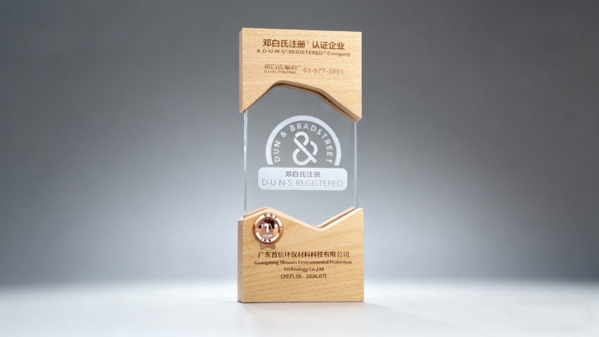 Baru-baru ini, Guangdong Shouxin Environmental Materials Technology Co., Ltd. secara resmi telah lulus sertifikasi perusahaan terdaftar dari Dun & Bradstreet (D-U-N-S®: 63-577-3891).
