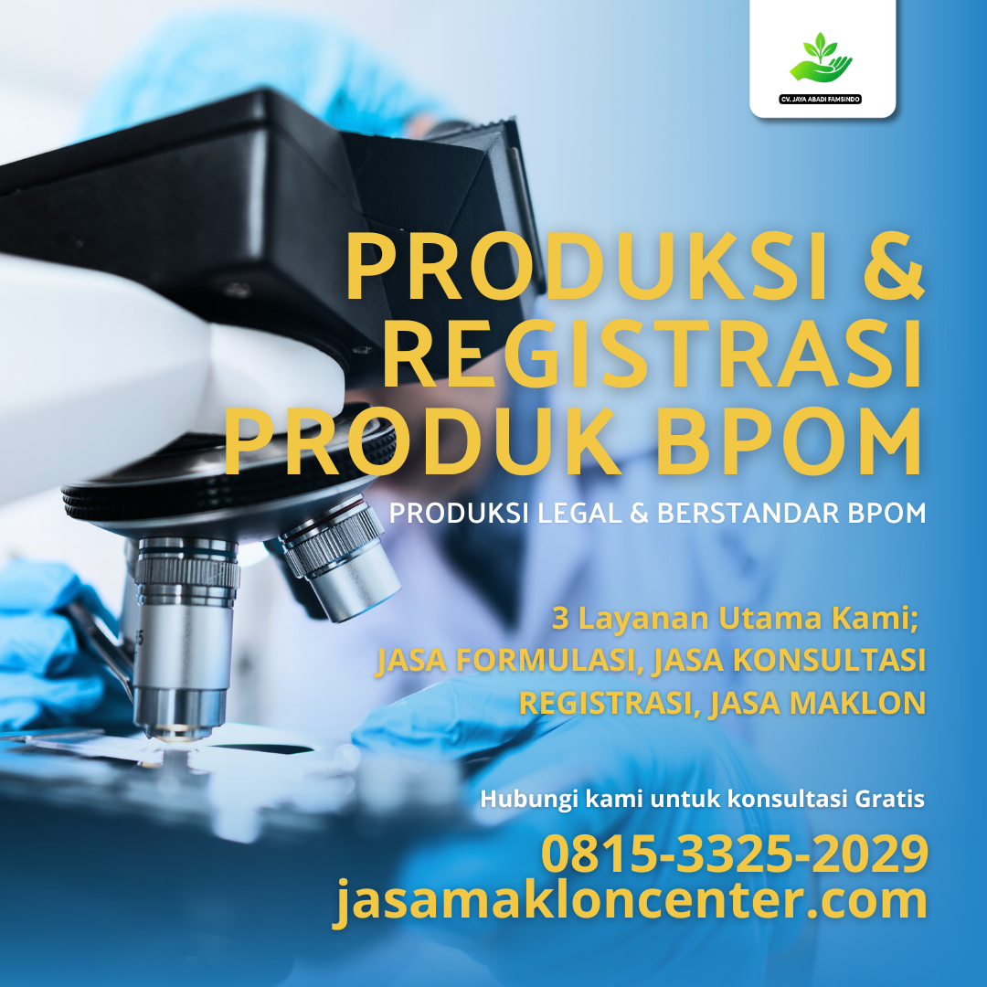 "KLIK https://wa.me/6281533252029, jasa maklon BPOM, jasa maklon kosmetik, jasa maklon suplemen, jasa formulasi produk herbal, jasa registrasi PIRT NA MD TR SD CV. Jaya Abadi Famsindo menyediakan layanan jasa maklon dan private label untuk produk herbal, kosmetik, dan suplemen yang cocok untuk UMKM dan brand baru. Layanan kami memudahkan pelaku usaha memiliki produk berkualitas dengan legalitas BPOM resmi tanpa harus membangun fasilitas produksi sendiri. # Layanan Maklon Produk Kami melayani maklon untuk berbagai jenis produk: - Herbal dan suplemen: kapsul, tablet, cair, serbuk, dan effervescent. - Minuman kesehatan: teh herbal, madu herbal, minuman botanical, minuman serbuk. - Skincare & bodycare: krim, lotion, serum, masker, sabun, dan body wash. - Kosmetik dekoratif: lipstik, bedak, blush on, foundation, dan produk makeup lainnya. Produk maklon dapat menggunakan brand Anda sendiri (private label), sehingga tampak profesional dan siap dipasarkan di pasaran lokal maupun online. # Keunggulan Jasa Maklon dan Private Label 1. Produksi Profesional – Standar BPOM untuk keamanan dan kualitas. 2. Batch Fleksibel – Bisa mulai dari batch kecil, ideal untuk UMKM. 3. Private Label – Produk bisa memakai brand sendiri. 4. Efisiensi Waktu dan Biaya – Tidak perlu membangun fasilitas produksi sendiri. 5. Pendampingan Penuh – Tim ahli membantu dari formulasi, produksi, hingga siap edar. Dengan layanan maklon, UMKM dan brand baru bisa lebih fokus membangun identitas brand, strategi pemasaran, dan penjualan, sementara seluruh proses produksi berjalan profesional dan aman. # Dukungan Formulasi dan Registrasi Selain maklon, kami juga menyediakan jasa formulasi produk herbal, kosmetik, dan suplemen agar formula produk sesuai standar dan sesuai tren pasar. Kami juga melayani jasa registrasi PIRT, NA, MD, TR, SD sehingga produk yang dipasarkan memiliki legalitas resmi BPOM dan aman untuk konsumen. Ingin memulai produk herbal, kosmetik, atau suplemen dengan brand sendiri? Konsultasi gratis sekarang bersama CV. Jaya Abadi Famsindo! Kontak Resmi: WhatsApp: https://wa.me/6281533252029 Website: https://jasamakloncenter.com Jasa Izin BPOM Kosmetik Kabupaten Bogor, Jasa Formulasi Krim Dan Salep Aceh, Jasa Maklon Makanan Ringan Mataram, Jasa Maklon Murah Lombok Barat, Jasa Maklon Obat Kuat Lombok Timur, Jasa Maklon Obat Ambeien KupangEnde, Jasa Makion Obat Maumere, Jasa Makloon Ambon, Jasa Maklon Parfum Laundry Ternate #JasaIzinBPOMKosmetikKabupatenBogor, #JasaFormulasiKrimDanSalepAceh, #JasaMaklonMakananRinganMataram, #JasaMaklonMurahLombokBarat, #JasaMaklonObatKuatLombokTimur, #JasaMaklonObatAmbeienKupangEnde, #JasaMakionObatMaumere, #JasaMakloonAmbon, #JasaMaklonParfumLaundryTernate"