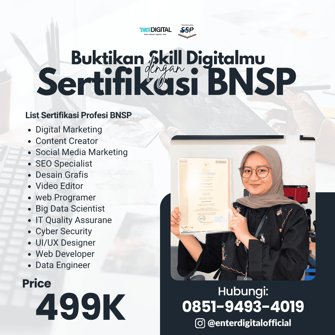 Belajar, Ujikom, dan Dapat Sertifikat Resmi BNSP! Program Online & Offline EnterDigital 2025