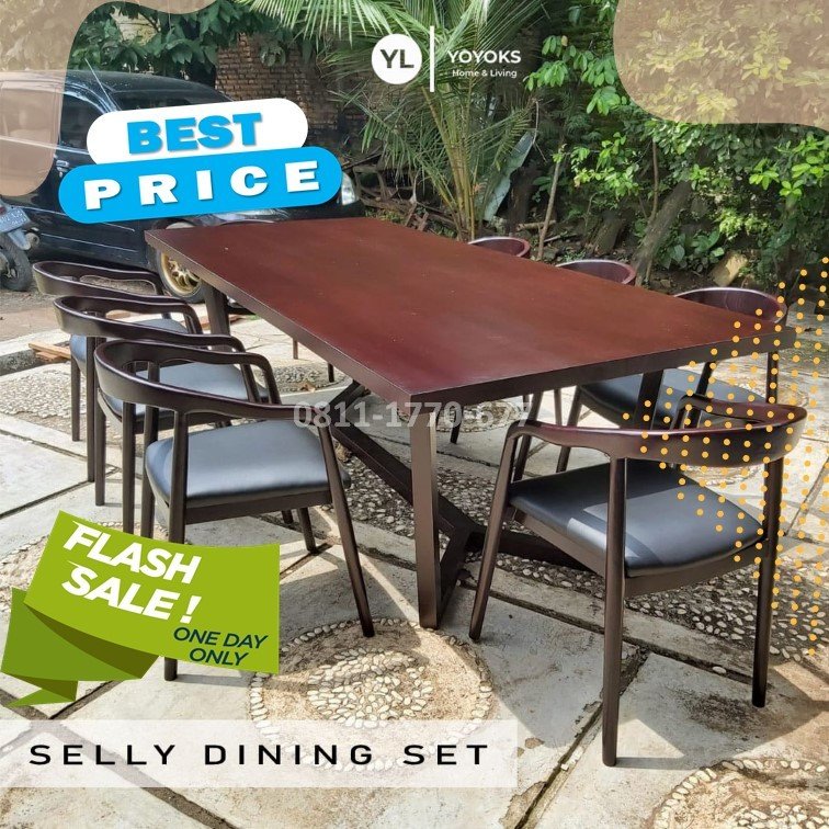 Model Kekinian 0811-1770-677, Set Meja Makan Jati 6 Kursi kirim ke Palangka Raya