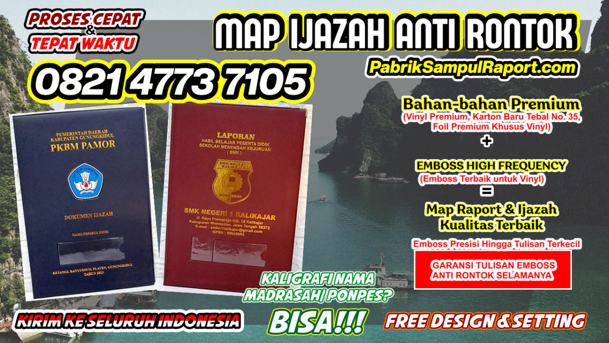 Pabrik Sampul Raport Sumut 0 Posted Februari 12, 2024 0821-4773-7105 Map Raport K13 Sampul Ijazah di Cianjur Map Raport K13 Sampul Ijazah di Cianjur, Map Ijazah Universitas Sampul Raport di Cilacap, Map Ijazah Sd Sampul Raport di Cirebon, Harga Map Raport Sampul Ijazah di Dairi, Cover Raport Tk Sampul Ijazah di Deiyai, Harga Map Ijazah Sampul Ijazah di Deli Serdang, Harga Sampul Ijazah Map Ijazah di Demak , Harga Sampul Raport Sd Map Ijazah di Dharmasraya, Sampul Raport Paud Map Ijazah di Dogiyai, Sampul Ijazah Tk Map Raport di Dompu Jembar Jaya Mandiri adalah perusahaan produksi (cetak) sampul map ijazah / sampul raport dengan sekala besar, kami telah menggunakan mesin cetak sekala pabrik dan juga memiliki tenaga kerja ahli, terampil dan profesional di bidangnya.Jembar Jaya Mandiri Melayani Cetak Sampul Raport dan MAP Ijazah, Harga Murah untuk sekolah TK, SD, SMP, SMK, SMA, Universitas, Pondok Pesantren dan Madrasah.Siap kirim ke seluruh wilayah Indonesia. Spek : - Bahan : - ASE grade 1 - Karton baru ketebalan 35 - Foil Emas Premium - Garansi Anti Rontok Seumur Hidup - Gratis desain tulisan Arab kaligrafi untuk nama yayasan pondok pesantren dan Madrasah. Kami berupaya menjadi percetakan map terbaik dalam hal kualitas produk dan pelayanan terhadap semua customer di wilayah Indonesia.Buat Map ijazah dan sampul raport di Jembar Jaya Mandiri lebih mudah, murah, aman, cepat dan terpercaya! Kami berupaya menjadi percetakan map terbaik dalam hal kualitas produk dan pelayanan terhadap semua customer di wilayah Indonesia. Bisa Custom : -Keling sudut -Logo berwarna -Resleting -Tambah demensi tebal -Tambah pita (penjepit Ijazah) -Emboss halaman belakang -Tambah Bludri (inner map) Kontak Kami : 0821-4773-7105 Atau bisa langsung klik link wa admin kami di https://bit.ly/ADMINJEMBARJAYAMANDIRI Kunjungi website resmi kami https://pabriksampulraport.com Quote Share this post Link to post Share on other sites