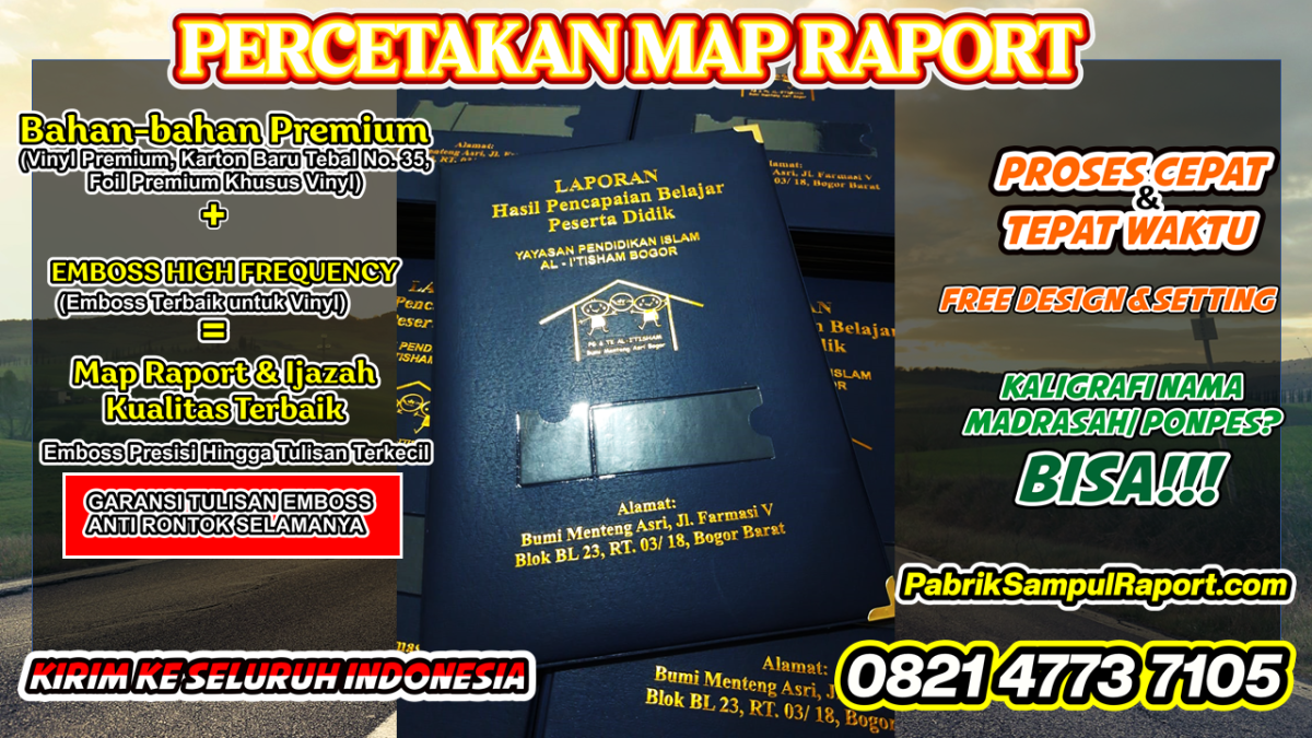 Jembar Jaya Mandiri Melayani Cetak Sampul Raport dan MAP Ijazah, Harga Murah untuk sekolah TK, SD, SMP, SMK, SMA, Universitas, Pondok Pesantren dan Madrasah.Siap kirim ke seluruh wilayah Indonesia.
