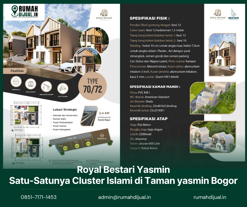 Rumah Dijualin 0 Posted Februari 21, 2024 cluster Islami Royal Bestari Yasmin Bogor Barat, Hub 0851 7171 1453 Cluster Islami Eksklusif Pertama dan Satu-satunya di Perumahan Taman Yasmin Kota Bogor Lokasi super strategis, dekat ke mana-mana! - 5 menit ke pintu tol - 5 menit ke pusat kuliner ternama dan viral - 5 menit ke Rumah Sakit - 5 menit ke pusat perbelanjaan dan hiburan keluarga - 5 menit ke Sports Center - 5 menit ke sekolah dan kampus formal - 5 menit ke lembaga pendidikan informal dan self-development - 5 menit ke pusat perbelanjaan kebutuhan dapur - 5 menit ke kantor ekspedisi *** Keuntungan tambahan: - Lingkungan sudah ramai - Bebas desain - Lingkungan ramah anak dan ramah keluarga - Bebas banjir - Keamanan 24 jam - One gate sytem HARGA TERMURAH di kelasnya, banyak bonus dan keuntungannya! Yuk, langsung survey aja. Hubungi : 0851 7171 1453 Quote Share this post Link to post Share on other sites