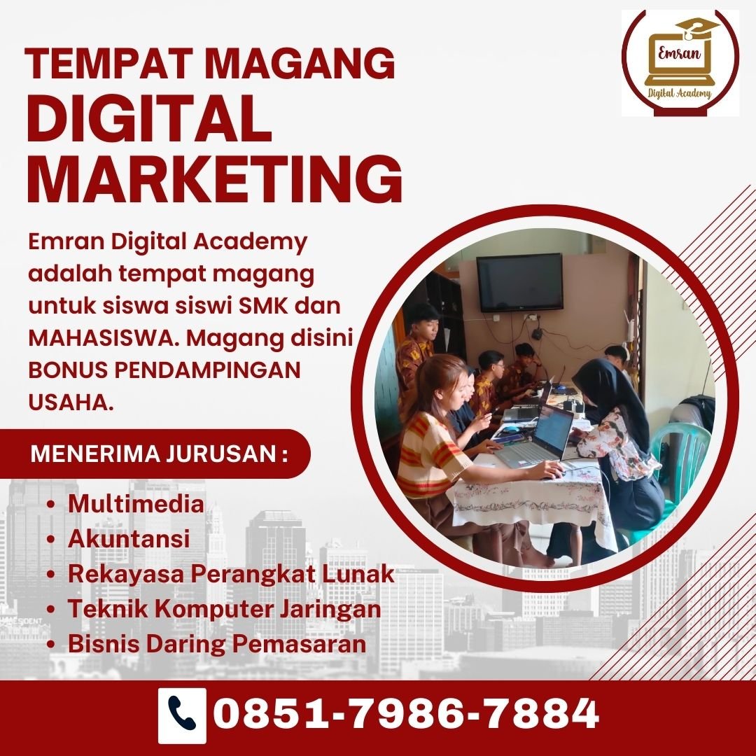 Tempat Magang Merdeka Malang 0 Posted Oktober 18, 2024 Tempat PKL RPL terdekat Malang, Tempat PKL SMK Malang, Tempat PKL SMK Jurusan Akuntansi Terdekat Malang, Tempat PKL SMK Jurusan Broadcasting Malang, Tempat PKL SMK Jurusan DKV Malang HUBUNGI SEKARANG!!! 0851-7986-7884, Tempat PKL RPL terdekat , Tempat PKL SMK , Tempat PKL SMK Jurusan Akuntansi Terdekat , Tempat PKL SMK Jurusan Broadcasting , Tempat PKL SMK Jurusan DKV Lowongan Magang SMK Terbuka! Siap memulai perjalanan karirmu? Dapatkan pengalaman kerja nyata dan keterampilan berharga di perusahaan top! Peluang belajar langsung dari ahli industri Pengalaman yang mendukung perjalanan pendidikanmu Kesempatan menambah CV-mu Jangan lewatkan kesempatan emas ini! Daftar sekarang dan buktikan bakatmu! Untuk Informasi lebih lanjut hubungi : CALL/WA : 0851-7986-7884 Alamat Magang : Emran Digital Academy Jl. Raya Kedawung No 99, Ngijo, Kec. Karangploso, Kab. Malang, Jawa Timur #TempatPKLSMKJurusanDKVMalang #TempatPKLSMKJurusanRPL #TempatPKLSMKJurusanTKJ #TempatPKLTeknikAudioVideo #TempatPKLTeknikAudioVideoTerdekat Quote Share this post Link to post Share on other sites