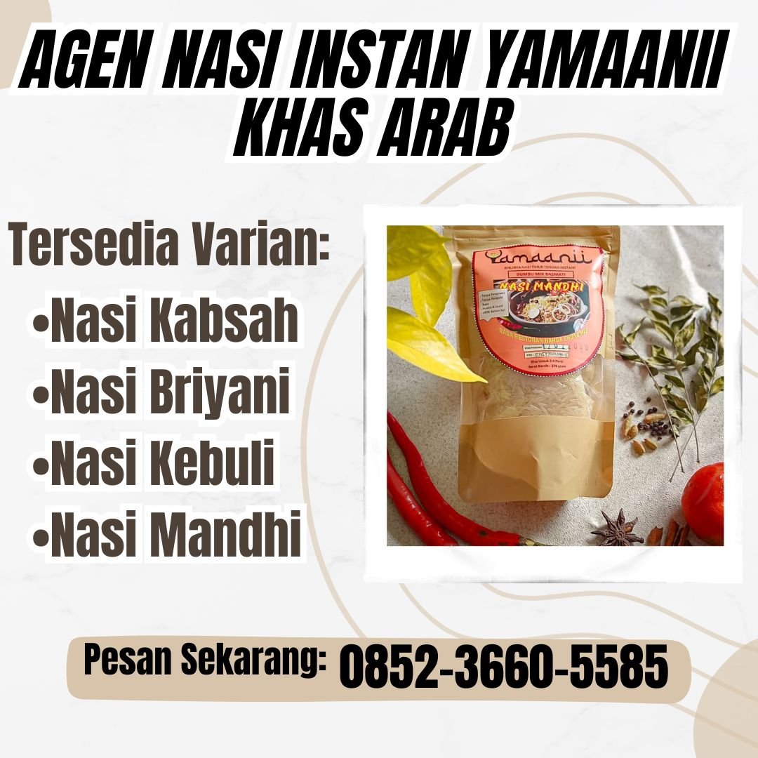 Pernah terbayang menikmati nasi Kebuli dengan cita rasa khas Timur Tengah yang dipadukan dengan selera Nusantara? Kini, impian tersebut menjadi kenyataan dengan Beras Kebuli Instan Yamaanii. Dilengkapi dengan beras basmati pilihan yang harum dan bumbu kering kaya rempah, setiap suapannya menawarkan rasa yang menggugah selera.                                                                                                                                                                                                                                                                                                                                                                                                            Untuk informasi lebih lanjut serta pemesanan, hubungi :