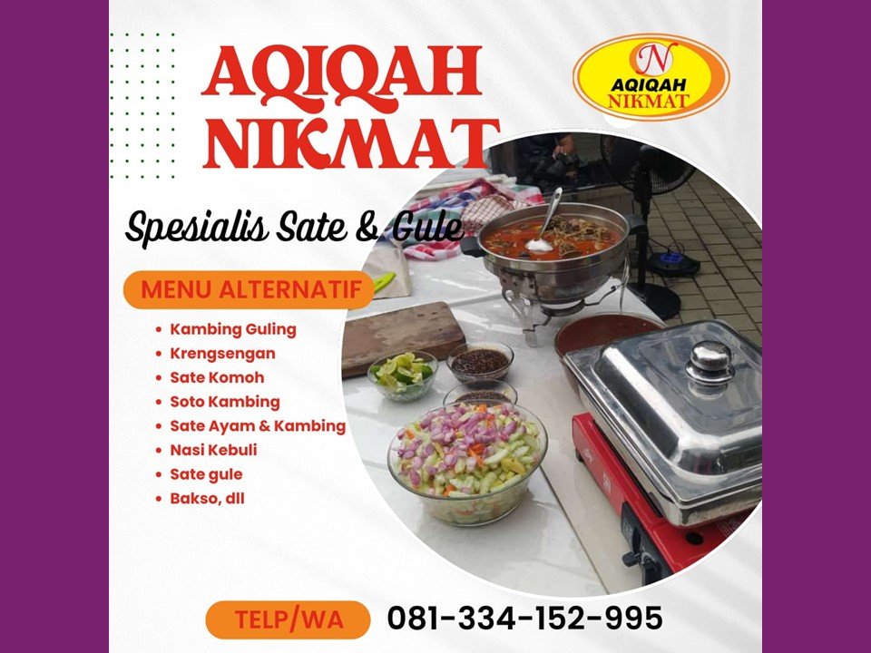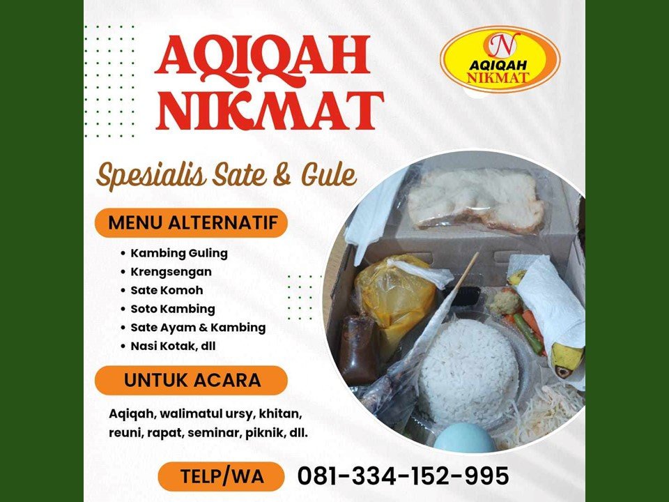 AQIQAH NIKMAT adalah usaha jasa kuliner dan aqiqah di Malang yang mengkhususkan pelayanan masakan olahan kambing berupa krengsengan, tongseng, bakso, soto, nasi kebuli, sate, gule, kambing guling, sate komoh, dan lain lain. Melayani pemesanan di kota-kota berikut: Malang Raya, Kota Batu, Kediri, Blitar, Pasuruan, Jombang, Surabaya, dan Sidoarjo.