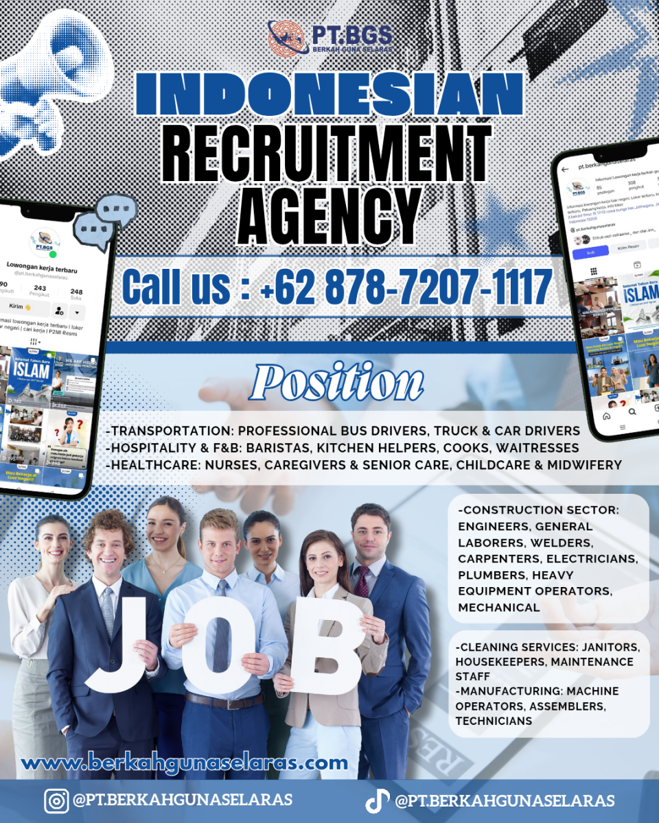 lowongankerjaterjamin 0 Posted Juli 17 +62-878-7207-1117 Trusted, Unskill Worker Agency In Indonesia For Musandam, Oman Call Or Whatsapp Me http://wa.me/6287872071117 , Unskill Worker Agency In Indonesia For Musandam, Oman, International Recruitment Agency In Indonesia For Riyadh, Saudi Arabia, International Recruitment Agency In Indonesia For Riyadh, Saudi Arabia, International Recruitment Agencies In Indonesia For Jeddah, Saudi Arabia, International Recruitment Supplier In Indonesia For Makkah, Saudi Arabia, International Recruitment Company In Indonesia For Madinah, Saudi Arabia, International Recruitment Companies In Indonesia For Hofuf, Saudi Arabia, International Recruitment Office In Indonesia For Ta'if, Saudi Arabia, International Labour Agency In Indonesia For Dammam, Saudi Arabia Looking for Reliable, Skilled, and Professional Workers? Choose Indonesia’s Best! We focus on connecting international companies with skilled and experienced Indonesian professionals across a variety of sectors. -Construction Sector: Engineers, General Laborers, Welders, Carpenters, Electricians, Plumbers, Heavy Equipment Operators, Mechanical -Healthcare: Nurses, Caregivers & Senior Care, Childcare & Midwifery -Hospitality & F&B: Baristas, Kitchen Helpers, Cooks, Waitresses -Transportation: Professional Bus Drivers, Truck & Car Drivers -Manufacturing: Machine Operators, Assemblers, Technicians -Cleaning Services: Janitors, Housekeepers, Maintenance Staff Why Choose Indonesian Workers from PT BGS? -Over 19 Years of Global Deployment Experience -Fully Licensed by Indonesia’s Ministry of Manpower -End-to-End Service: Recruitment, Medical, Visa, Deploymen -Trusted by Clients like Samsung, Hyundai, Bahra Cable, Huta Hegerfeld, Vision Etimaad, Saudi Binladin Group and many others -Ready for Large-Scale Partner with us and get manpower solutions tailored to your needs. -Contact Us Today -Website: www.berkahgunaselaras.com -Email: pt.bgs.id@gmail.com -Phone: +62-878-7207-1117 +62-852-8094-4939 Indonesia – Ready to Serve the World #UnskillWorkerAgencyInIndonesiaForMusandam,Oman, #InternationalRecruitmentAgencyInIndonesiaForRiyadhSaudiArabia, #InternationalRecruitmentAgencyInIndonesiaForRiyadhSaudiArabia, #InternationalRecruitmentAgenciesInIndonesiaForJeddahSaudiArabia, #InternationalRecruitmentSupplierInIndonesiaForMakkahSaudiArabia, #InternationalRecruitmentCompanyInIndonesiaForMadinahSaudiArabia, #InternationalRecruitmentCompaniesInIndonesiaForHofufSaudiArabia, #InternationalRecruitmentOfficeInIndonesiaForTa'ifSaudiArabia, #InternationalLabourAgencyInIndonesiaForDammamSaudiArabia Quote Share this post Link to post Share on other sites