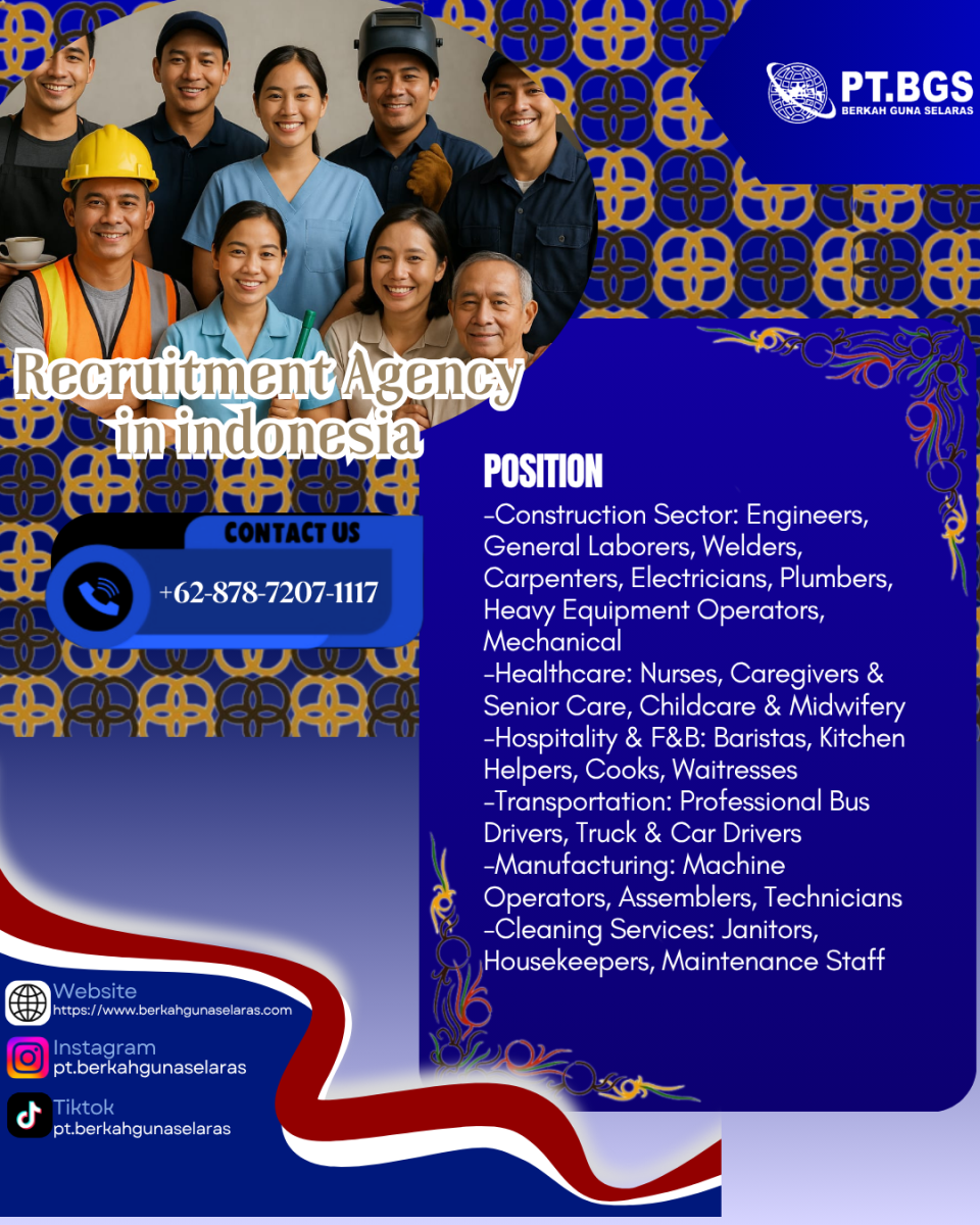 karirhub 0 Posted Agustus 4 (edited) "+62-878-7207-1117 Trusted, Manpower Agency In Indonesia For Al Shamal, Qatar Call Or Whatsapp Me http://wa.me/6287872071117 , Manpower Agency In Indonesia For Al Shamal, Qatar, Manpower Agency In Indonesia For Al Shamal, Qatar, International Manpower Agency In Indonesia For Ajloun, Jordania, International Manpower Agencies In Indonesia For Salt , Jordania, International Manpower Supplier In Indonesia For Aqaba, Jordania, International Manpower Company In Indonesia For Rukban, Jordania, International Manpower Companies In Indonesia For Mafraq, Jordania, International Manpower Office In Indonesia For Balqa, Jordania, International Recruitment Agency In Indonesia For Riyadh, Saudi Arabia Looking for Reliable, Skilled, and Professional Workers? Choose Indonesia’s Best! We focus on connecting international companies with skilled and experienced Indonesian professionals across a variety of sectors. -Construction Sector: Engineers, General Laborers, Welders, Carpenters, Electricians, Plumbers, Heavy Equipment Operators, Mechanical -Healthcare: Nurses, Caregivers & Senior Care, Childcare & Midwifery -Hospitality & F&B: Baristas, Kitchen Helpers, Cooks, Waitresses -Transportation: Professional Bus Drivers, Truck & Car Drivers -Manufacturing: Machine Operators, Assemblers, Technicians -Cleaning Services: Janitors, Housekeepers, Maintenance Staff Why Choose Indonesian Workers from PT BGS? -Over 19 Years of Global Deployment Experience -Fully Licensed by Indonesia’s Ministry of Manpower -End-to-End Service: Recruitment, Medical, Visa, Deploymen -Trusted by Clients like Samsung, Hyundai, Bahra Cable, Huta Hegerfeld, Vision Etimaad, Saudi Binladin Group and many others -Ready for Large-Scale Partner with us and get manpower solutions tailored to your needs. -Contact Us Today -Website: www.berkahgunaselaras.com -Email: pt.bgs.id@gmail.com -Phone: +62-878-7207-1117 +62-852-8094-4939 Indonesia – Ready to Serve the World #ManpowerAgencyInIndonesiaForAlShamal,Qatar, #ManpowerAgencyInIndonesiaForAlShamalQatar, #InternationalManpowerAgencyInIndonesiaForAjlounJordania, #InternationalManpowerAgenciesInIndonesiaForSalt Jordania, #InternationalManpowerSupplierInIndonesiaForAqabaJordania, #InternationalManpowerCompanyInIndonesiaForRukbanJordania, #InternationalManpowerCompaniesInIndonesiaForMafraqJordania, #InternationalManpowerOfficeInIndonesiaForBalqaJordania, #InternationalRecruitmentAgencyInIndonesiaForRiyadhSaudiArabia" Diedit Agustus 4 -Editor : karirhub Quote Share this post Link to post Share on other sites