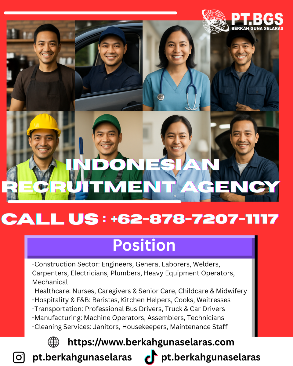 Loker kerja Terpercaya Terkini 0 Posted Agustus 14 +62-878-7207-1117 Trusted, Labour Agencies In Indonesia For Al Wusta, Oman Call Or Whatsapp Me http://wa.me/6287872071117 , Labour Agencies In Indonesia For Al Wusta, Oman, Labour Agencies In Indonesia For Al Wusta, Oman, International Skilled Worker Agencies In Indonesia For Ta'if, Saudi Arabia, International Skilled Worker Supplier In Indonesia For Dammam, Saudi Arabia, International Skilled Worker Company In Indonesia For Buraidah, Saudi Arabia, International Skilled Worker Companies In Indonesia For Khobar, Saudi Arabia, International Skilled Worker Office In Indonesia For Tabuk, Saudi Arabia, International Manpower Agency In Indonesia For Al-Qassim, Saudi Arabia, International Manpower Agencies In Indonesia For Qatif, Saudi Arabia Looking for Reliable, Skilled, and Professional Workers? Choose Indonesia’s Best! We focus on connecting international companies with skilled and experienced Indonesian professionals across a variety of sectors. -Construction Sector: Engineers, General Laborers, Welders, Carpenters, Electricians, Plumbers, Heavy Equipment Operators, Mechanical -Healthcare: Nurses, Caregivers & Senior Care, Childcare & Midwifery -Hospitality & F&B: Baristas, Kitchen Helpers, Cooks, Waitresses -Transportation: Professional Bus Drivers, Truck & Car Drivers -Manufacturing: Machine Operators, Assemblers, Technicians -Cleaning Services: Janitors, Housekeepers, Maintenance Staff Why Choose Indonesian Workers from PT BGS? -Over 19 Years of Global Deployment Experience -Fully Licensed by Indonesia’s Ministry of Manpower -End-to-End Service: Recruitment, Medical, Visa, Deploymen -Trusted by Clients like Samsung, Hyundai, Bahra Cable, Huta Hegerfeld, Vision Etimaad, Saudi Binladin Group and many others -Ready for Large-Scale Partner with us and get manpower solutions tailored to your needs. -Contact Us Today -Website: www.berkahgunaselaras.com -Email: pt.bgs.id@gmail.com -Phone: +62-878-7207-1117 +62-852-8094-4939 Indonesia – Ready to Serve the World #LabourAgenciesInIndonesiaForAlWusta,Oman, #LabourAgenciesInIndonesiaForAlWustaOman, #InternationalSkilledWorkerAgenciesInIndonesiaForTa'ifSaudiArabia, #InternationalSkilledWorkerSupplierInIndonesiaForDammamSaudiArabia, #InternationalSkilledWorkerCompanyInIndonesiaForBuraidahSaudiArabia, #InternationalSkilledWorkerCompaniesInIndonesiaForKhobarSaudiArabia, #InternationalSkilledWorkerOfficeInIndonesiaForTabukSaudiArabia, #InternationalManpowerAgencyInIndonesiaForAl-QassimSaudiArabia, #InternationalManpowerAgenciesInIndonesiaForQatifSaudiArabia Quote Share this post Link to post Share on other sites