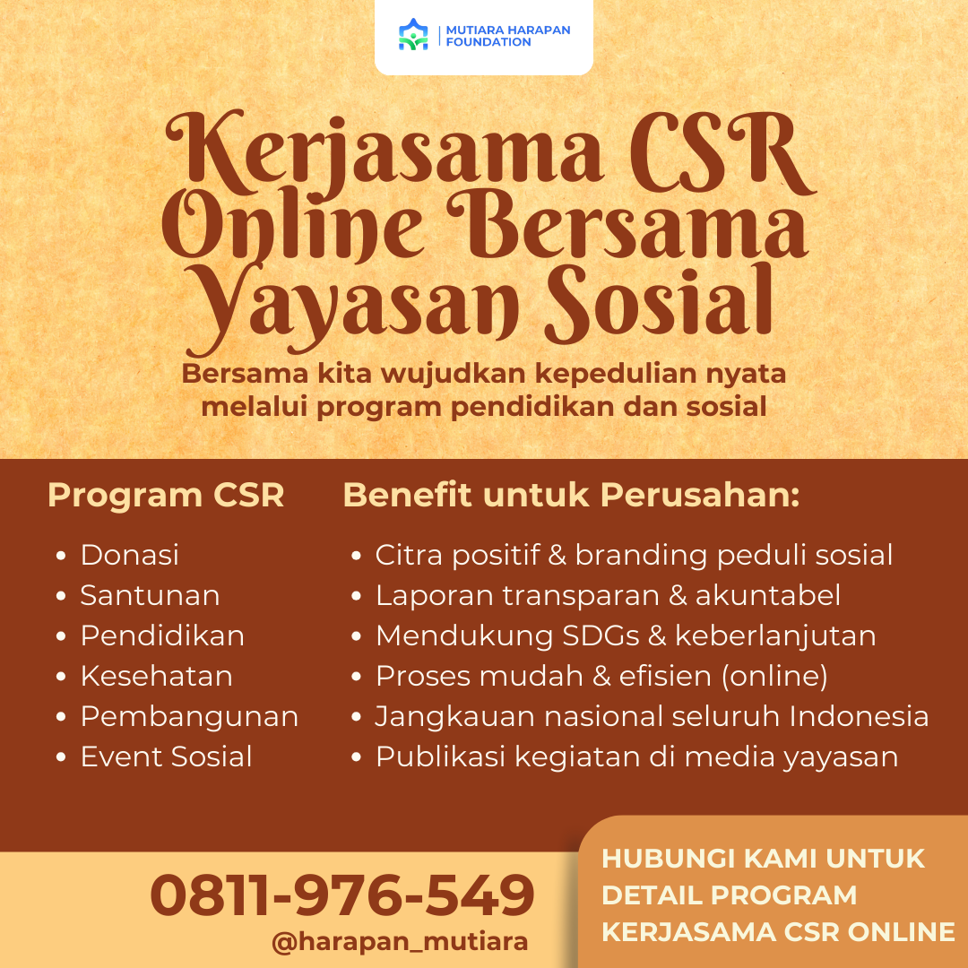 fadlanmuhammad 890 0 Posted September 22 KOLABORASI! WA: 0811-976-549, Program CSR Perusahaan Swasta Gunungsitoli Yayasan Mutiara Harapan – Mitra CSR Online Amanah di Seluruh Indonesia Klik Hubungi https://wa.me/62811976549 Yayasan Mutiara Harapan adalah lembaga sosial yang dikenal amanah, transparan, dan profesional dalam mengelola program sosial bagi anak yatim dan masyarakat yang membutuhkan. Berlokasi di Pondok Aren – Kota Tangerang Selatan, yayasan ini siap bekerjasama dengan perusahaan melalui program CSR online dengan jangkauan nasional. Dengan dukungan sistem digital, setiap donasi dapat dikelola lebih cepat, mudah, dan berdampak nyata. Karena itu Yayasan Mutiara Harapan menjadi pilihan perusahaan yang mencari mitra CSR terpercaya di Indonesia. Mengapa Memilih Yayasan Mutiara Harapan? 1. Transparansi penuh – laporan dana jelas dan akurat. 2. Skala nasional – distribusi CSR online menjangkau seluruh Indonesia. 3. Proses praktis – semua kerjasama dilakukan secara online. 4. Reputasi baik – publikasi program CSR mendukung citra perusahaan. Program CSR Online Yayasan Mutiara Harapan 1. Pendidikan Anak Yatim - Beasiswa daring dari SD sampai perguruan tinggi. - Bantuan peralatan sekolah untuk berbagai daerah. 2. Kesehatan Online - Donasi layanan kesehatan jarak jauh. - Bantuan gizi dan makanan sehat. 3. Santunan Digital - Santunan bulanan via transfer online. - Distribusi sembako ke rumah penerima manfaat. 4. Pembangunan Fasilitas - Dukungan pembangunan masjid, rumah yatim, dan ruang belajar. - Monitoring proyek secara online. 5. Event Sosial Online - Buka puasa bersama anak yatim secara virtual. - Pelatihan keterampilan daring. Sebagai yayasan CSR terpercaya, Yayasan Mutiara Harapan siap bermitra dengan perusahaan di seluruh Indonesia. Semua program dijalankan dengan amanah, transparansi, dan hasil nyata. Hubungi kami: WhatsApp: [0811-976-549](https://wa.me/62811976549) Instagram: [@harapan_mutiara](https://instagram.com/harapan_mutiara) Website: [yayasanmutiaraharapan.id](https://yayasanmutiaraharapan.id) Alamat: Jl. Utama Puri Bintaro Hijau, Pondok Aren – Kota Tangerang Selatan Tempat Donasi Resmi Perusahaan Secara Online Sintang, Mitra Kerjasama CSR Belu, Yayasan Penerima CSR Online Ende, CSR Santunan Anak Yatim Flores Timur, Bantuan Dana CSR Online Kupang, Lembaga Sosial Penerima CSR Resmi Lembata, Bantuan Dana CSR Online Malaka, CSR Yayasan Resmi Online Manggarai #TempatDonasiResmiPerusahaanSecaraOnlineSintang, #MitraKerjasamaCSRBelu, #YayasanPenerimaCSROnlineEnde, #CSRSantunanAnakYatimFloresTimur, #BantuanDanaCSROnlineKupang, #LembagaSosialPenerimaCSRResmiLembata, #BantuanDanaCSROnlineMalaka, #CSRYayasanResmiOnlineManggarai Quote Share this post Link to post Share on other sites