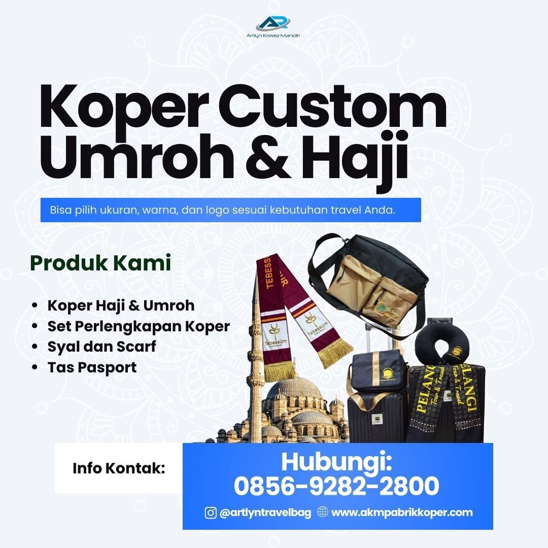 kopercustom untukbrandtravel 0 Posted September 23 "KLIK: https://wa.me/6285692822800, Pabrik koper umroh custom logo untuk travel agency, tour & travel, dan biro haji terpercaya. Produsen koper haji dan umroh skala besar dengan harga pabrik, kualitas premium, dan layanan custom branding sesuai identitas perusahaan Anda. Apakah Anda sedang mencari produsen koper haji dan umroh yang bisa melayani pesanan skala besar dengan harga kompetitif? Kami adalah PT Artlyn Kreasi Mandiri, pabrik koper custom berpengalaman yang siap menjadi mitra terpercaya untuk memenuhi kebutuhan perlengkapan jamaah travel Anda. Dengan fasilitas produksi modern, kami mampu memproduksi ribuan koper setiap bulannya untuk berbagai agency travel, biro umroh, dan tour & travel di seluruh Indonesia bahkan hingga Malaysia. #Koper Umroh Custom Logo Langsung Pabrik Sebagai pabrik koper resmi, kami memproduksi berbagai ukuran koper umroh: cabin 20 inch, medium 24 inch, hingga large 28 inch. Semua koper dapat disesuaikan dengan logo travel agency Anda melalui teknik sablon maupun emboss. Keunggulan koper custom logo kami: * Material premium: tahan lama, ringan, dan nyaman digunakan jamaah. * Desain modern: cocok untuk perjalanan jarak jauh. * Logo custom: meningkatkan branding perusahaan Anda. * Harga pabrik: lebih hemat dibandingkan membeli retail. * Produksi massal: sanggup memenuhi permintaan ribuan unit. #Keunggulan Pabrik Koper PT Artlyn Kreasi Mandiri Sebagai produsen koper skala besar, kami menawarkan lebih dari sekadar produk, tetapi juga solusi branding bagi perusahaan travel: 1. Produksi langsung pabrik → harga lebih terjangkau tanpa perantara. 2. Skala besar → kapasitas produksi ribuan unit per bulan. 3. Custom branding → logo, warna, dan desain sesuai permintaan. 4. Kualitas terjamin → bahan kuat dan tahan lama untuk perjalanan umroh. 5. Jangkauan luas → distribusi ke seluruh Indonesia dan ekspor ke Malaysia. #Lokasi Target Pemesanan Koper Grosir Kami melayani permintaan koper umroh custom logo di berbagai kota besar Indonesia: * Jakarta, Surabaya, Bandung, Medan, Makassar. * Semarang, Yogyakarta, Solo, Malang, Palembang, Padang, Pekanbaru. * Banjarmasin, Pontianak, Denpasar, Lampung, Batam, Samarinda, Balikpapan, Manado, Gorontalo, Mataram, Ambon, hingga Jayapura. Untuk pasar internasional, kami juga melayani ekspor koper umroh ke Malaysia, Singapura, dan Brunei Darussalam. Mengapa Travel Agency Perlu Koper Custom Logo? - Identitas jamaah lebih jelas → memudahkan pengawasan di bandara dan hotel. - Meningkatkan profesionalitas → jamaah merasa lebih percaya dengan travel agency. - Media branding berjalan → koper berlogo akan terus mengingatkan jamaah pada perusahaan Anda. - Souvenir eksklusif → memberikan kesan premium bagi pelanggan. Dengan koper custom logo, travel agency Anda tidak hanya memberikan perlengkapan perjalanan, tetapi juga membangun citra brand yang lebih kuat. Proses pemesanan sangat mudah: 1. Hubungi kami melalui WhatsApp. 2. Pilih ukuran koper sesuai kebutuhan jamaah. 3. Kirimkan desain logo atau branding perusahaan Anda. 4. Tentukan jumlah pesanan dan waktu produksi. 5. Koper diproduksi langsung di pabrik kami dengan standar kualitas tinggi. Sebagai Pabrik Koper Umroh Skala Besar, PT Artlyn Kreasi Mandiri siap mendukung bisnis travel agency Anda dengan perlengkapan jamaah berkualitas. Kami memahami kebutuhan biro perjalanan untuk tampil profesional, karena itu setiap produk dibuat dengan detail dan presisi tinggi. Sekarang saatnya travel agency Anda naik kelas dengan koper custom logo langsung dari pabrik terpercaya. Jangan menunggu lama, pastikan travel Anda menjadi pilihan utama jamaah dengan perlengkapan yang berkelas dan eksklusif. Hubungi kami sekarang juga untuk pemesanan grosir koper umroh custom logo: WhatsApp: https://wa.me/6285692822800 Nomor: 0856-9282-2800 Instagram: @artlyntravelbag Website: https://www.akmpabrikkoper.com/ Grosir Perlengkapan Umroh Terdekat Prabumulih, Koper Umroh Custom Logo Travel Surabaya, Produsen Koper Haji Dan Umroh Malang, Koper Umroh Untuk Agen Travel Medan, Koper Haji Dan Umroh Murah Berkualitas Padang, Koper Haji Dan Umroh Custom Branding Pekanbaru, Perlengkapan Koper Umroh Palembang, Set Perlengkapan Haji Dan Umroh Lampung #GrosirPerlengkapanUmrohTerdekatPrabumulih, #KoperUmrohCustomLogoTravelSurabaya, #ProdusenKoperHajiDanUmrohMalang, #KoperUmrohUntukAgenTravelMedan, #KoperHajiDanUmrohMurahBerkualitasPadang, #KoperHajiDanUmrohCustomBrandingPekanbaru, #PerlengkapanKoperUmrohPalembang, #SetPerlengkapanHajiDanUmrohLampung" Quote Share this post Link to post Share on other sites