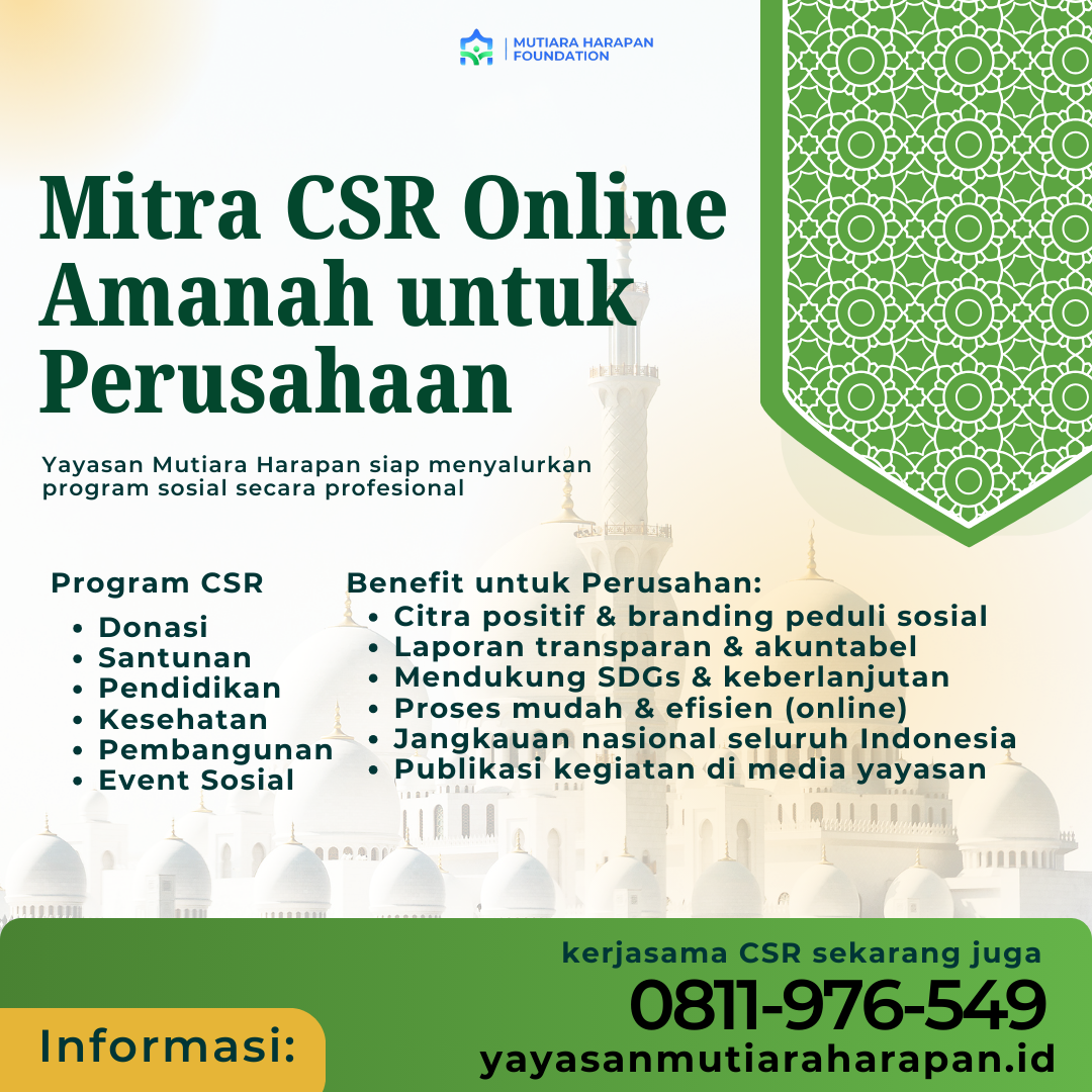 Raden Ridwan 0 Posted September 24 "AMANAH! WA: 0811-976-549, Program CSR Perusahaan Tambang Batubara Langsa Yayasan Mutiara Harapan – Mitra CSR Online Profesional untuk Perusahaan Klik Hubungi [https://wa.me/62811976549](https://wa.me/62811976549) Yayasan Mutiara Harapan adalah lembaga sosial yang mengedepankan prinsip amanah, transparansi, dan profesionalisme dalam menyalurkan donasi serta program sosial bagi anak yatim dan masyarakat kurang mampu. Berlokasi di Pondok Aren – Kota Tangerang Selatan, yayasan ini siap bekerjasama dengan perusahaan melalui program CSR online dengan jangkauan seluruh Indonesia. Dengan dukungan teknologi digital, penyaluran program CSR dapat dilakukan secara lebih cepat, mudah, dan terukur. Yayasan Mutiara Harapan hadir sebagai solusi bagi perusahaan yang membutuhkan mitra CSR terpercaya di Indonesia. Mengapa Bermitra dengan Yayasan Mutiara Harapan? 1. Amanah dan Terbuka – laporan keuangan dan donasi jelas serta terperinci. 2. Jangkauan Nasional – program CSR online mencakup seluruh daerah Indonesia. 3. Efisiensi Tinggi – semua kerjasama dilakukan secara digital tanpa hambatan lokasi. 4. Citra Positif – kegiatan CSR meningkatkan reputasi sosial perusahaan. Program CSR Online Yayasan Mutiara Harapan 1. Program Pendidikan Anak Yatim - Beasiswa daring mulai SD hingga perguruan tinggi. - Bantuan perlengkapan sekolah bagi anak-anak di berbagai wilayah. 2. Program Kesehatan Online - Donasi layanan pemeriksaan kesehatan jarak jauh. - Dukungan gizi seimbang dan makanan sehat. 3. Program Santunan Digital - Santunan bulanan anak yatim melalui transfer online. - Penyaluran sembako langsung ke penerima manfaat. 4. Program Pembangunan Fasilitas - Renovasi rumah yatim, ruang belajar, dan masjid. - Monitoring pembangunan melalui laporan digital. 5. Program Event Sosial Online - Kegiatan buka puasa virtual bersama anak yatim. - Pelatihan keterampilan daring untuk pemberdayaan masyarakat. Sebagai yayasan penerima CSR online terpercaya, Yayasan Mutiara Harapan siap bermitra dengan perusahaan di seluruh Indonesia. Setiap program dijalankan amanah, transparan, dan memberikan manfaat nyata. Hubungi Yayasan Mutiara Harapan WhatsApp: https://wa.me/62811976549 Instagram: [@harapan\_mutiara](https://instagram.com/harapan_mutiara) Website: [yayasanmutiaraharapan.id](https://yayasanmutiaraharapan.id) Alamat: Jl. Utama Puri Bintaro Hijau, Pondok Aren – Kota Tangerang Selatan Kerjasama CSR Yayasan Secara Online Langsa, Tempat Donasi Resmi Perusahaan Secara Online Wonosobo, Donasi Anak Yatim Online Magelang, Donasi Makan Anak Yatim Pekalongan, Yayasan Anak Yatim Terpercaya Untuk Donasi Salatiga, Kerjasama CSR Dengan Yayasan Online Semarang, Yayasan Sosial Penerima CSR Online Surakarta, Kerjasama CSR Yayasan Secara Online Tegal #KerjasamaCSRYayasanSecaraOnlineLangsa, #TempatDonasiResmiPerusahaanSecaraOnlineWonosobo, #DonasiAnakYatimOnlineMagelang, #DonasiMakanAnakYatimPekalongan, #YayasanAnakYatimTerpercayaUntukDonasiSalatiga, #KerjasamaCSRDenganYayasanOnlineSemarang, #YayasanSosialPenerimaCSROnlineSurakarta, #KerjasamaCSRYayasanSecaraOnlineTegal" Quote Share this post Link to post Share on other sites