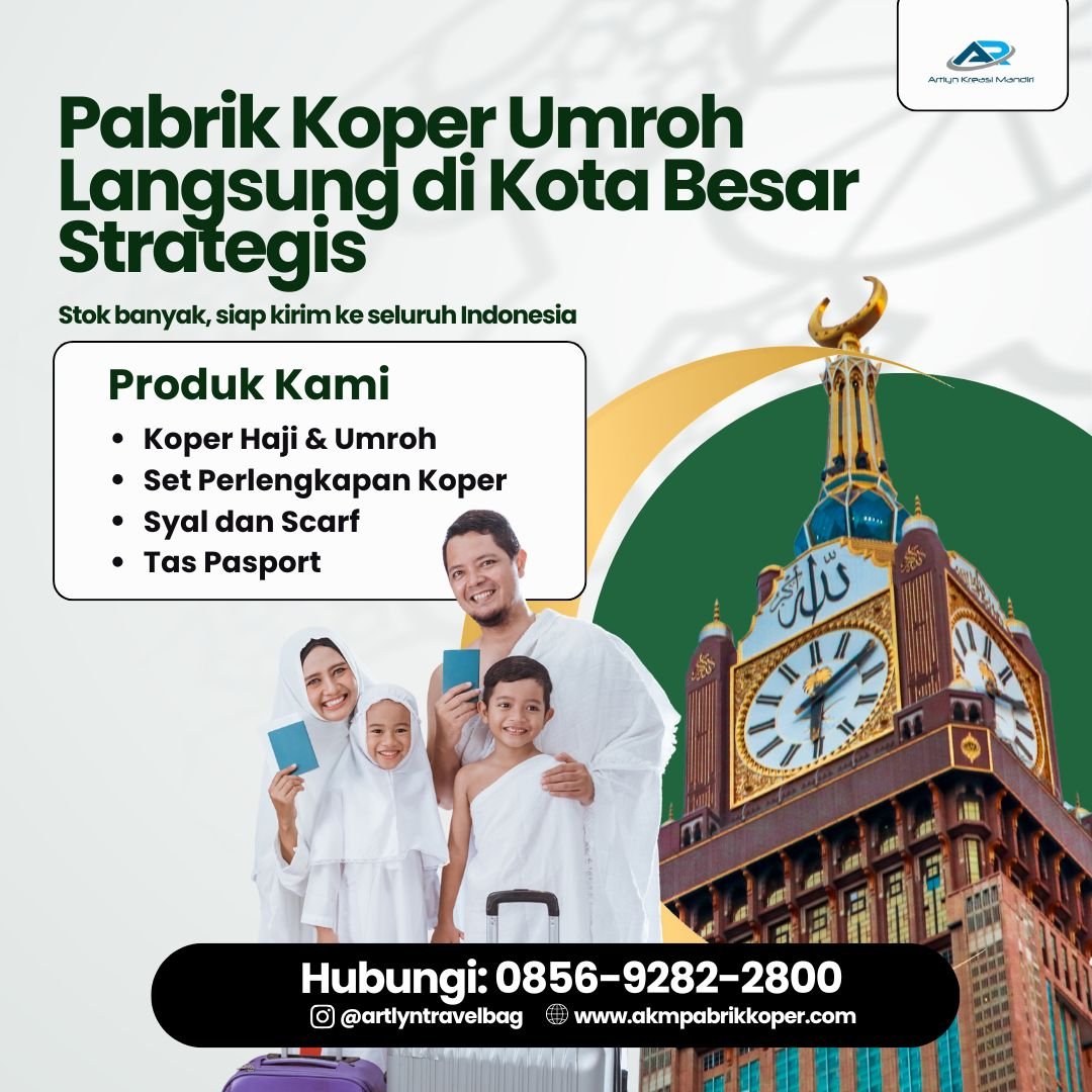 "KLIK: https://wa.me/6285692822800, PT. Artlyn Kreasi Mandiri (AKM) adalah produsen koper haji dan umroh yang dikenal menghadirkan koper premium, berkualitas tinggi, dan bisa custom logo. Semua produk diproduksi langsung di pabrik sehingga terjamin kualitasnya sekaligus lebih hemat karena harga grosir.