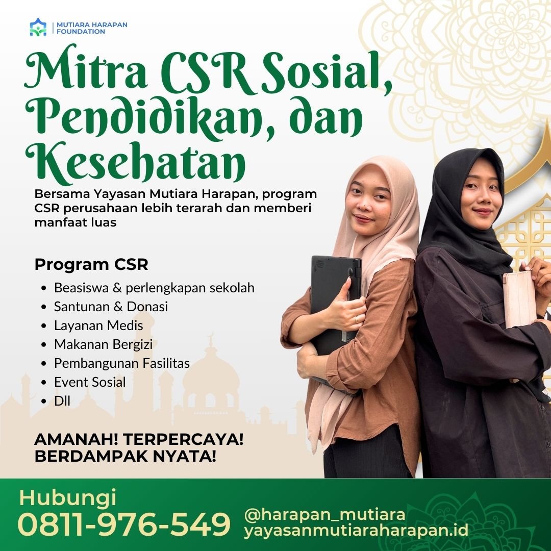 Bermitra CSR dengan Yayasan Mutiara Harapan berarti menghadirkan kepedulian nyata. Bersama, kita membangun masa depan cerah bagi anak yatim dan masyarakat.