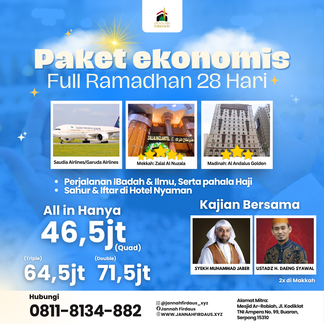 RECOMMENDED! WA: 0811-8134-882, Paket Umroh Full Ramadhan Tangerang Selatan, Jannah Firdaus