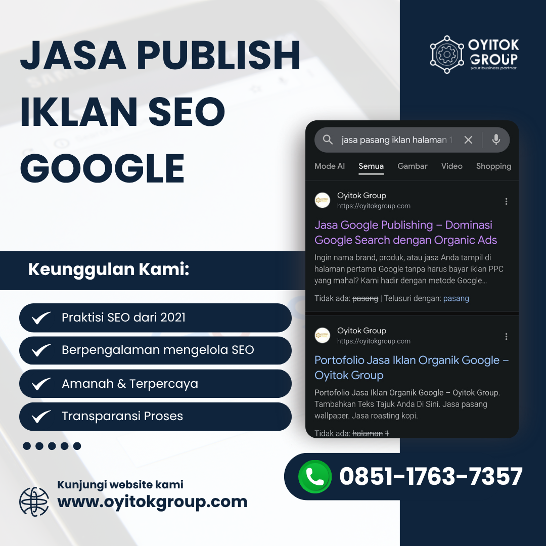 jasawallpaper indonesia28 0 Posted November 10 JASA PUBLISH IKLAN SEO GOOGLE Mau bisnismu gampang ditemuin di Google tanpa bayar iklan terus-menerus? Capek keluar duit tapi orderan gak nambah? Oyitok Group punya solusinya! Kami adalah spesialis jasa publish iklan SEO google yang fokusnya bikin bisnismu jadi raja di halaman pencarian. Layanan jasa iklan google organik kami dirancang untuk datengin pembeli yang udah niat beli. Tim kami akan melakukan jasa publishing iklan organik google secara terstruktur dan masif. Ini adalah jasa iklan produk dimesin pencari yang paling efektif buat kamu yang mau menang persaingan jangka panjang. Layanan Kami: • Optimasi SEO Produk & Jasa → Kami bantu produkmu muncul di kata kunci yang paling sering dicari. • Jasa Publish Iklan Masif → Menyebar promosi bisnismu di berbagai platform high-authority. • Strategi Konten Organik → Membuat konten relevan yang disukai Google dan calon pembeli. Kenapa Pilih Oyitok Group? • Berpengalaman sejak 2021 membantu ratusan bisnis go digital. • Murni teknik SEO (organik), bukan iklan berbayar (paid ads). • Konten dibuat relevan, aman, dan tahan lama di Google. • Fokus pada hasil jangka panjang, bukan instan tapi cepat hilang. Jangan biarkan usahamu tenggelam di halaman 5 Google. Saatnya ambil alih pencarian dan datangkan orderan dengan strategi organik yang efektif, Hubungi Sekarang! WhatsApp: 0851-1763-7357 Website: www.oyitokgroup.com #oyitokgroup #jasaSEO #iklanorganik #jasaiklangoogle #publishiklan #promosigoogle Quote Share this post Link to post Share on other sites