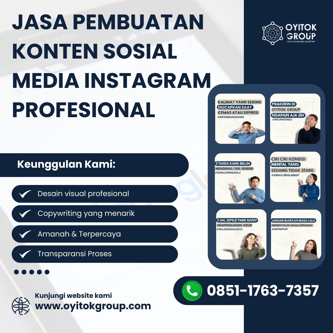 wallpapermalangid 0 Posted 19 jam yg lalu. JASA PEMBUATAN KONTEN SOSIAL MEDIA INSTAGRAM PROFESIONAL Jasa pembuatan konten sosial media Instagram profesional dari Oyitok Group siap bantu akunmu tampil lebih rapi, konsisten, dan punya kualitas visual yang naik kelas. Dengan strategi konten yang tepat, brand kamu bisa berkembang alami tanpa ribet mikirin ide tiap hari. Lewat layanan Jasa optimasi sosial media dan Jasa pembuatan konten sosial media, setiap desain, copywriting, sampai alur konten disusun secara profesional biar makin relevan dengan audiens dan mendukung kebutuhan kontenmu secara menyeluruh. Seluruh strategi konten dirancang mengikuti algoritma Instagram terbaru supaya hasil yang kamu dapetin lebih stabil, optimal, dan tahan lama. Tujuannya? Biar akunmu keliatan profesional, menarik, dan makin dipercaya. Apa yang Kami Tawarkan: • Perencanaan & optimasi konten Instagram • Desain visual profesional • Copywriting yang menarik & sesuai target pasar Kenapa Harus Oyitok Group: • Desain dan copywriting premium • Fokus pada pertumbuhan organik jangka panjang • Cocok untuk brand, hingga bisnis skala besar Bayangin akun Instagram dan bisnismu makin sering nongol di feed, explore, sampai pencarian Google. Jangkauan naik, brand makin trusted, peluang closing makin gampang tanpa harus boros budget iklan. Tertarik? Langsung kontak aja: WhatsApp: 0851-1763-7357 Instagram: @oyitokgroup Website: oyitokgroup.com #jasapembuatanKonteninstagram #jasapembuatanKontensosialmedia #optimasiinstagram #jasakonteninstagram #promosibisnisonline #oyitokgroup Quote Share this post Link to post Share on other sites