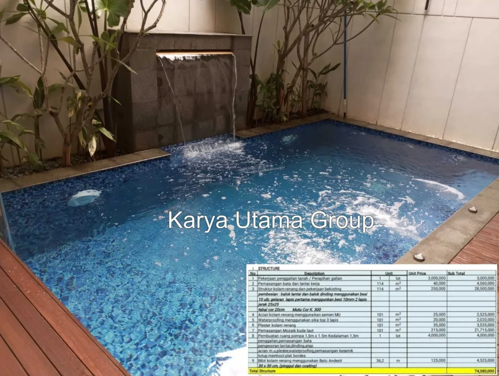 4. Perhitungan biaya pembuatan kolam renang per meter yang kompetitif dan dapat disesuaikan dengan luas lahan Anda.