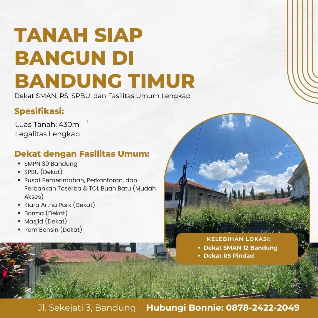 aggas liee 0 Posted 21 jam yg lalu. "Klik https://wa.me/6287824222049, tanah strategis Bandung, tanah dekat SMAN 12 Bandung, tanah dekat SMPN 30 Bandung, lahan siap bangun Bandung Timur, tanah SHM Kiaracondong. Tanah ini berada di kawasan pendidikan dan hunian aktif di Bandung Timur. Lokasi seperti ini paling dicari untuk rumah tinggal, kos-kosan, dan investasi karena permintaan selalu ada. Cocok untuk pembeli yang ingin aset aman, jelas, dan mudah dikembangkan. Keunggulan Utama - Lokasi strategis dekat SMAN 12 Bandung - Dekat SMPN 30 Bandung - Lingkungan pendidikan dan hunian - Area padat aktivitas dan berpenghuni - Dekat RS Pindad - Dekat Kiara Artha Park - Dekat Borma dan pusat belanja - Dekat masjid dan fasilitas umum - Akses mudah ke Jalan Soekarno Hatta - Akses cepat menuju Tol Buah Batu Spesifikasi Lahan - Luas tanah 430 meter persegi - Dimensi lahan ideal untuk bangunan - Akses jalan baik dan mudah - Kondisi lahan siap bangun - Dokumen lengkap dan aman Lokasi Jalan Sekejati III, Kelurahan Sukapura, Kecamatan Kiaracondong, Kota Bandung. - Area sekolah selalu dicari untuk hunian dan kos - Risiko rendah, nilai cenderung naik - Cocok untuk end-user dan investor - Unit terbatas di kawasan ini Hubungi sekarang! Whatsapp: 0878-2422-2049 (P. Bonnie) #TanahSiapBangunDekatBormaBandung, #TanahSiapBangunDekatMasjidBandung, #TanahSiapBangunDekatPomBensinBandung, #TanahSiapBangunDekatPerkantoranBandung, #TanahSiapBangunDekatPabrikBandung, #TanahSiapBangunDekatMallBandung, #TanahSiapBangunDekatSMAN8Bandung, #TanahSiapBangunDekatSMPN50Bandung TanahSiapBangunDekatBormaBandung, TanahSiapBangunDekatMasjidBandung, TanahSiapBangunDekatPomBensinBandung, TanahSiapBangunDekatPerkantoranBandung, TanahSiapBangunDekatPabrikBandung, TanahSiapBangunDekatMallBandung, TanahSiapBangunDekatSMAN8Bandung, TanahSiapBangunDekatSMPN50Bandung" Quote Share this post Link to post Share on other sites