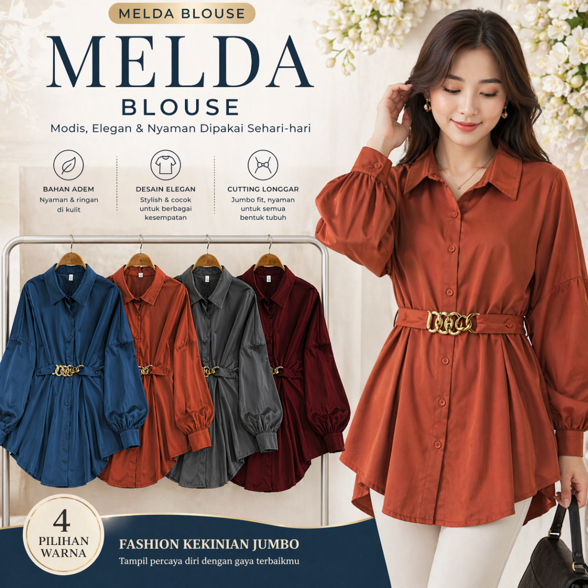 Melda Blouse Wanita Modis Elegan | Atasan Adem Nyaman Jumbo Fit Kekinian