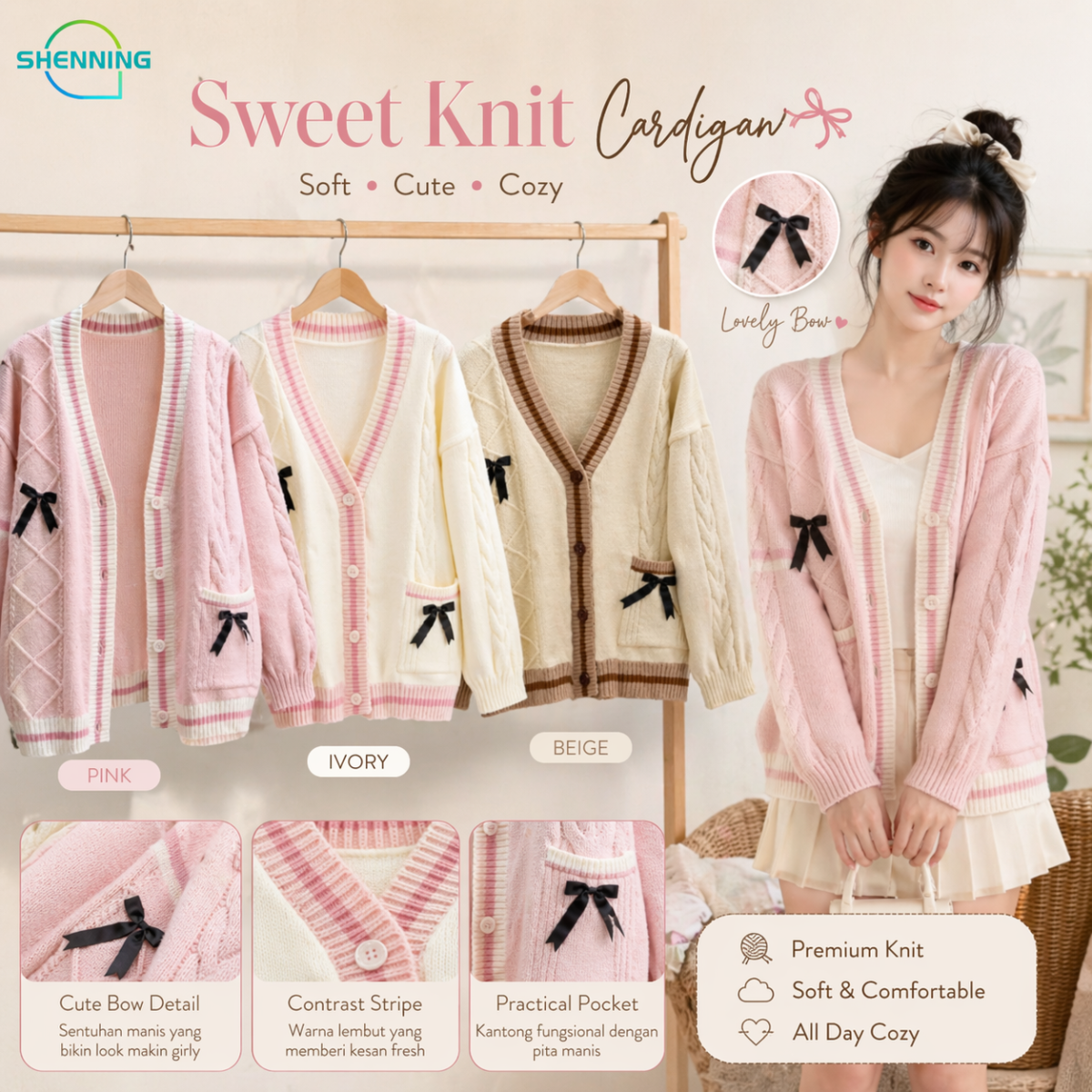 🌸 Cardigan Wanita Coquette Knit Oversize – Pita Gemes & Stylish 🌸